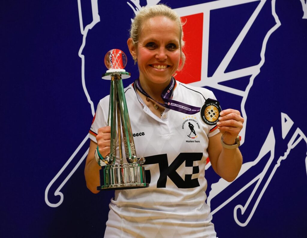 Unsere Bambini-Trainerin und Stürmerin der DHC-Damen Lydia Bechtold-Haase ist Weltmeisterin ! 🏆 🖤🤍 Gemeinsam mit der deutschen Ü40-Nationalmannschaft hat sie Ende März im englischen Nottingham bei der Hallen-Hockey-Ü40-Weltmeisterschaft unter anderem die Teams aus Guyana, Wales, Australien und England besiegt und selbst acht Tore zum Gesamtsieg beigetragen! 💪🏑🔥